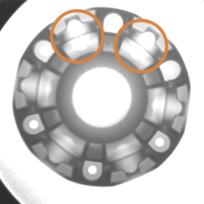 We provide our customers with products of the highest quality. To ensure there are no abnormalities we X-ray all moving parts. The abnormalities that we look for are small holes in the material, known as porosity, foreign contaminants or weak points which could cause a failure if used in a running fan. Here are some examples of parts where we have found some abnormalities: